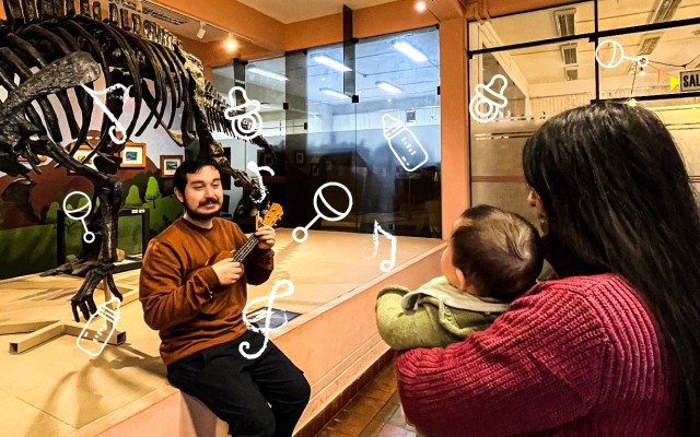 Durante el recorrido, las familias visitan las salas de dinosaurios, insectos, vertebrados y el mundo marino, finalmente participan en un cierre musical.